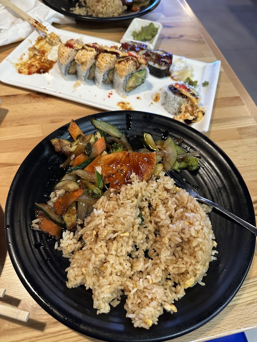 A popular choice among regulars is the hibachi combination meals, which let you enjoy a bit of everything. For example, the steak and shrimp combo offers a fantastic balance of flavors, with the steak grilled to the perfect level of doneness and the shrimp cooked just right. Each meal is accompanied by fried rice, vegetables, and a side of dipping sauce, adding depth to every bite. The fried rice, in particular, is a highlight-light yet packed with flavor, it complements the protein perfectly.